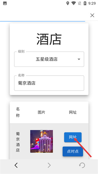 4、選擇“五星級(jí)酒店”級(jí)別并輸入“葡京酒店”后,點(diǎn)擊對(duì)應(yīng)條目旁的“網(wǎng)址”按鈕,可訪問該酒店的詳情頁面。
