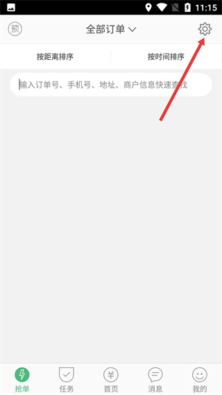 2、在全部訂單頁(yè)面,點(diǎn)擊右上角的設(shè)置圖標(biāo),可進(jìn)入搶單相關(guān)的功能配置界面。