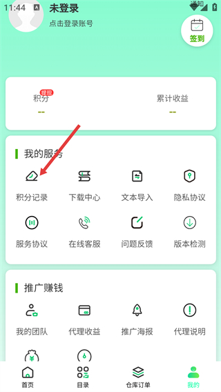3、在個(gè)人中心的“我的服務(wù)”板塊中,選擇【積分記錄】功能,觸發(fā)會(huì)員登錄頁(yè)面的跳轉(zhuǎn)。