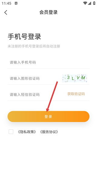 4、在會(huì)員登錄頁(yè)面,依次填寫手機(jī)號(hào)、圖形驗(yàn)證碼、短信驗(yàn)證碼,勾選相關(guān)協(xié)議后點(diǎn)擊【登錄】按鈕,完成賬號(hào)登錄操作。
