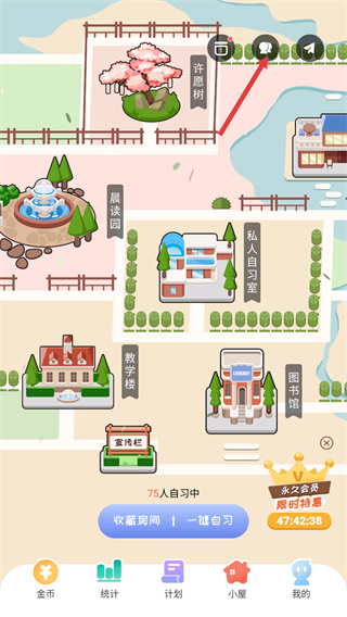 1、進入校園場景界面,點擊右上角的好友圖標(biāo),進入“小紙條|我的好友”頁面。