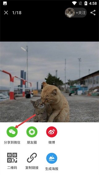 4、在分享選項(xiàng)菜單里,選擇“分享到微信”等渠道,即可將當(dāng)前圖冊內(nèi)容分享至對應(yīng)的社交平臺。