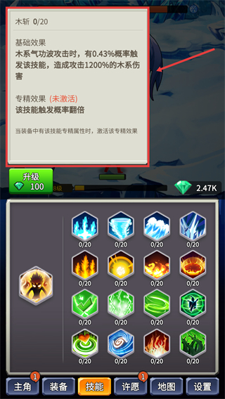3、升級(jí)【木斬】技能提升觸發(fā)概率與傷害,搭配木系百分比回血,實(shí)現(xiàn)高效無(wú)傷刷怪。