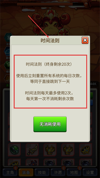 4、合理使用【時(shí)間法則】重置每日次數(shù),無(wú)消耗使用獲取更多資源,加速角色成長(zhǎng)進(jìn)度。