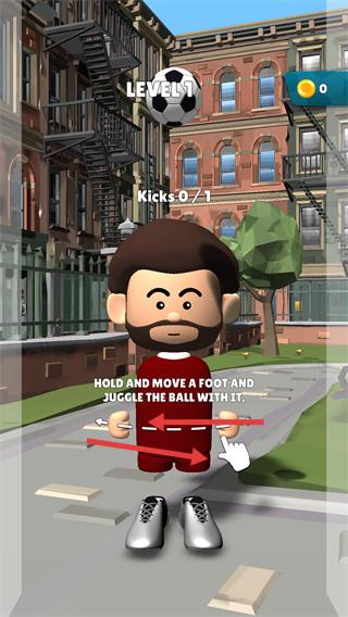 2、按住并移動(dòng)角色的腳顛球,保持足球不落地,完成指定次數(shù),鍛煉反應(yīng)力與手速。