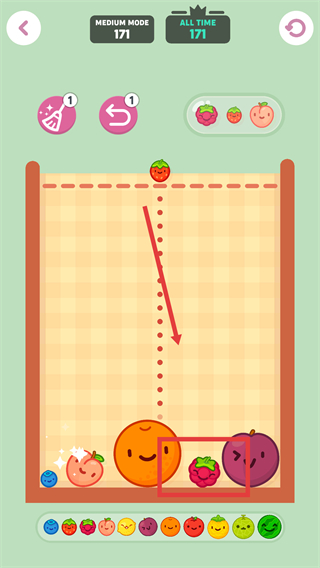 4、在后期,精準(zhǔn)控制草莓下落位置,使其與下方覆盆子組合觸發(fā)連鎖消除,能獲得更高的游戲分?jǐn)?shù)。