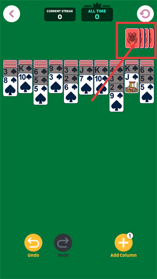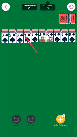 4、沒有卡牌順位時,可點擊右上方蜘蛛卡牌,獲取新的卡牌資源完成序列構(gòu)建。