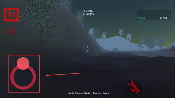 2、進入場景后通過【移動控制鍵】操控角色,關注【Health-200%】狀態(tài),優(yōu)先尋找物資補充資源。