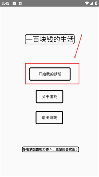 1、在【一百塊錢的生活】界面點擊【開始我的夢想】開啟游戲,進入后需規(guī)劃資源獲取方式推進進程。