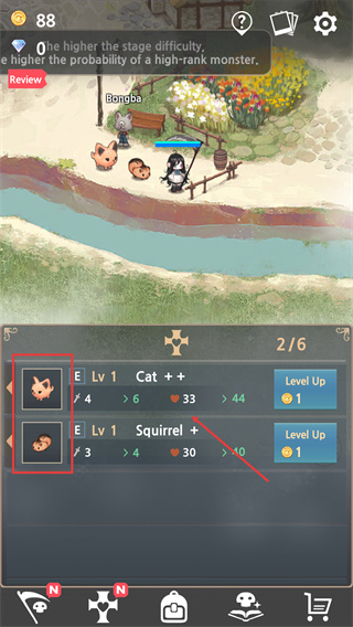 4、通過【Level-Up】功能升級隨從【Cat++】和【Squirrel+】,提升其屬性,增強隊伍整體輸出。