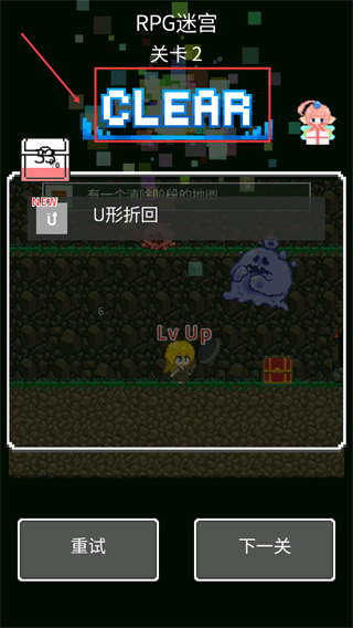 4、達(dá)成【CLEAR】通關(guān)條件后,選擇【下一關(guān)】繼續(xù)挑戰(zhàn),解鎖新的【RPG迷宮】關(guān)卡內(nèi)容。