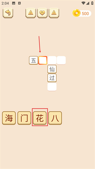 1、觀察當(dāng)前待填區(qū)域,選擇底部候選字【花】填入對(duì)應(yīng)空格。