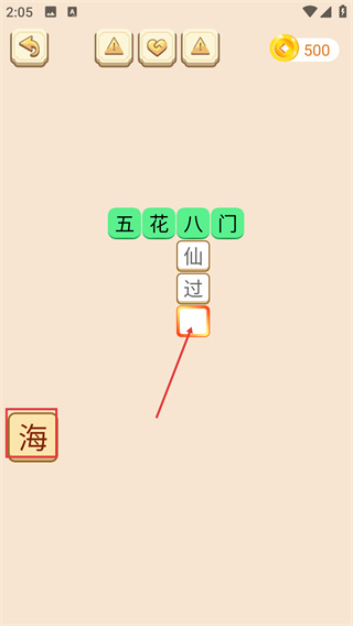 2、選取候選字【八】填入相鄰空格,逐步完善成語的前半部分。